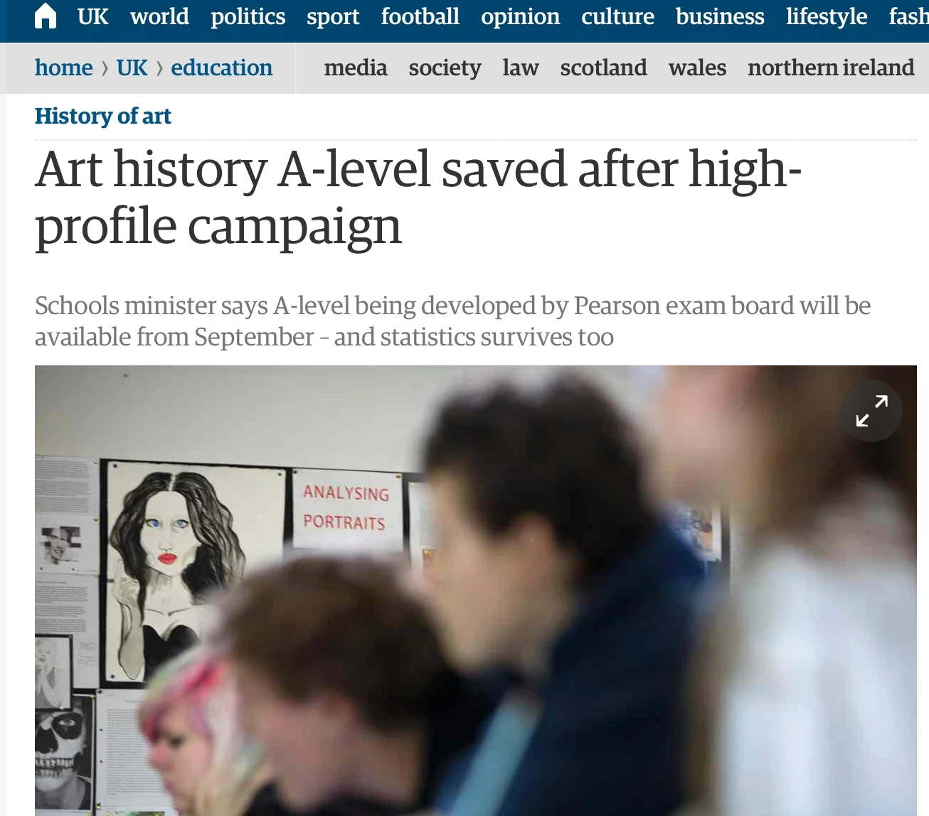 Just weeks after it was announced that art history A-level was to be dropped the government has said that the qualification will be saved after all.